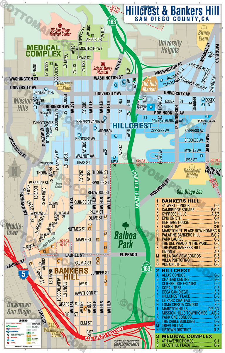 Hillcrest and Bankers Hill Map, San Diego, CA โ Otto Maps